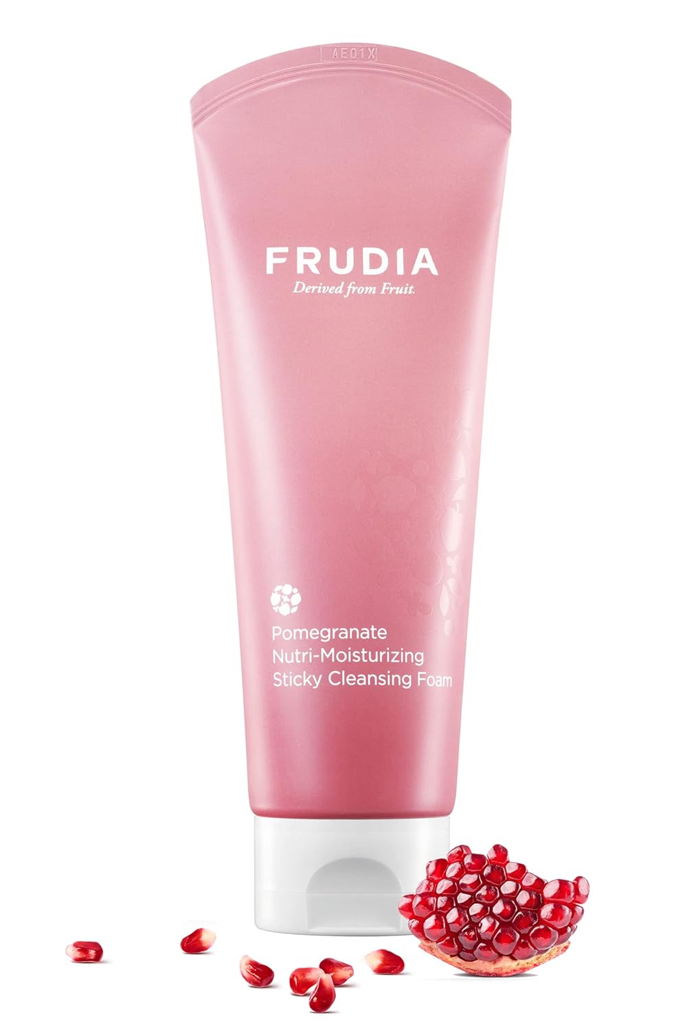 - Cuando se combina con agua, la espuma limpiadora facial de granada Frudia se convierte en espuma, lo que ayuda a limpiar e hidratar la piel en profundidad.