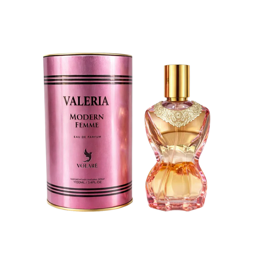 Valeria Modern Femme de Volaré es una fragancia femenina moderna, gourmand y elegante. Comienza con una luminosa bergamota, evoluciona hacia una jugosa pera verde y termina con una cremosa y envolvente vainilla. Una fragancia suave, sensual e irresistible, perfecta para acompañar cada momento de la vida diaria con un toque femenino y reconfortante.